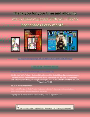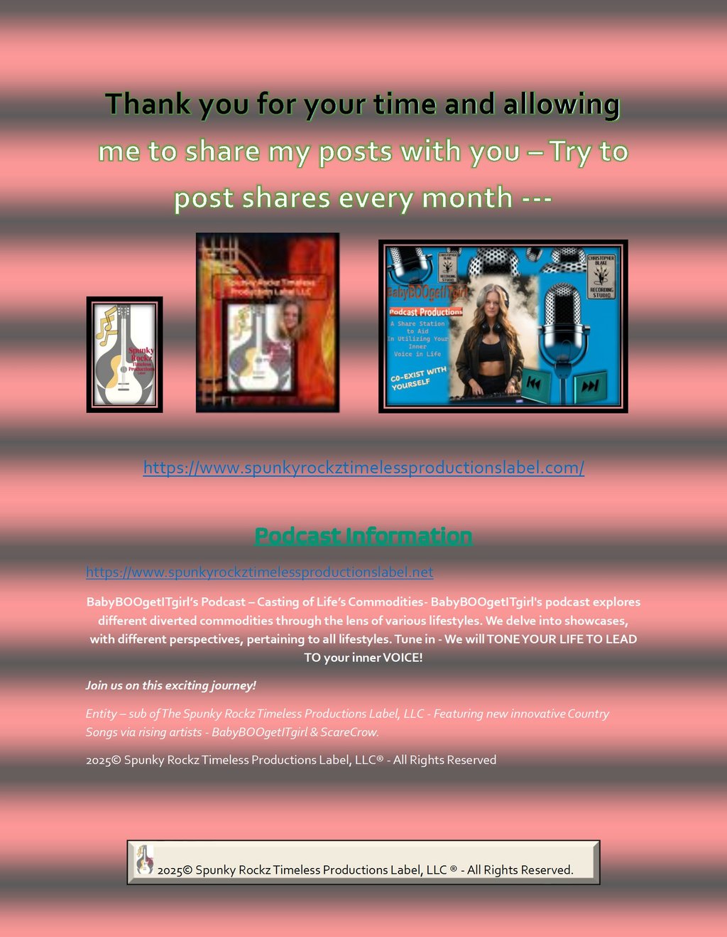 Spunky Rockz Timeless Production Label FEATURING: Artist: BabyBOOgetITgirl & ScareCrow on guitar